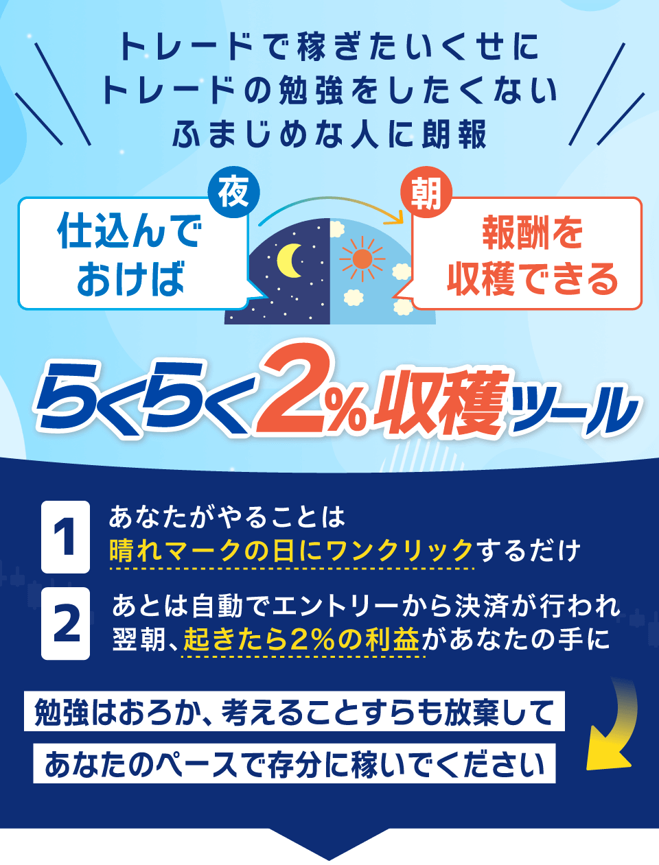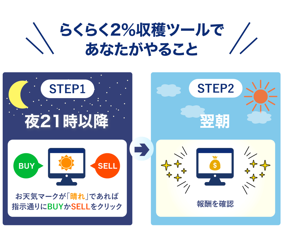 1)まずは考えずにらくらく2%収穫ツールで稼ぐ