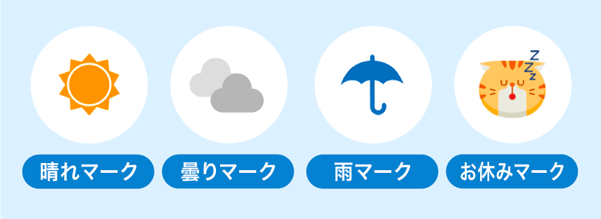 「曇り」「雨」「お休み」と3種類のマークを用意し、